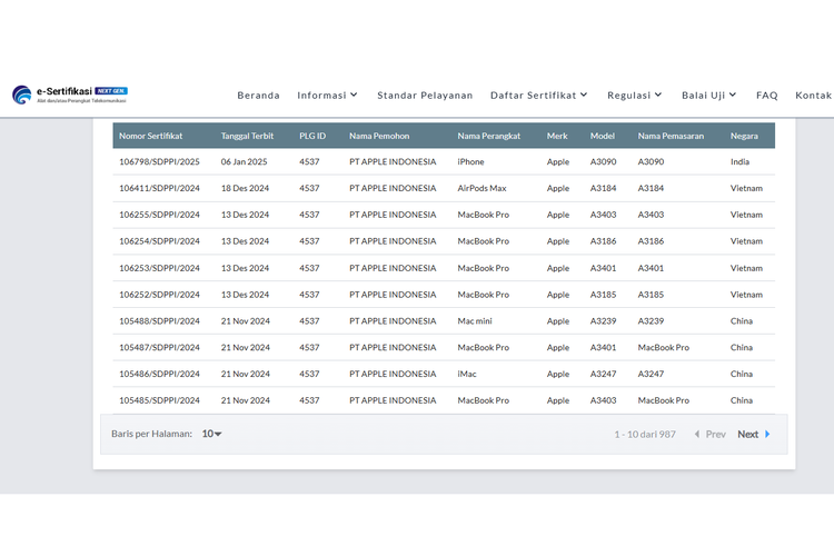 Dua laman sertifikasi itu adalah situs Postel dari Direktorat Jenderal (Ditjen) Sumber Daya dan Perangkat Pos dan Informatika (SDPPI),Kementerian Komunikasi dan Informatika (Kominfo) yang kini berubah jadi Kementerian Komunikasi dan Digital (Komdigi).