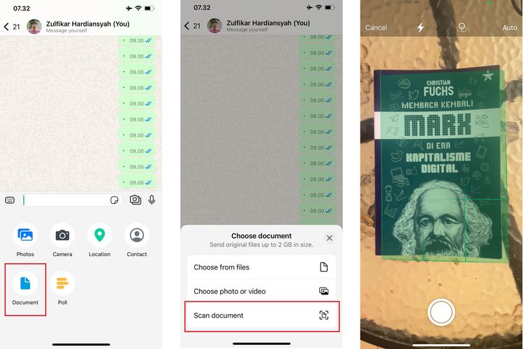 Pengguna bisa membuka menu itu untuk mengakses fitur scan dokumen. Saat fitur diakses dan pemindaian berjalan,kamera WhatsApp bakal bisa mendeteksi bidang yang hendak dipindai secara otomatis.