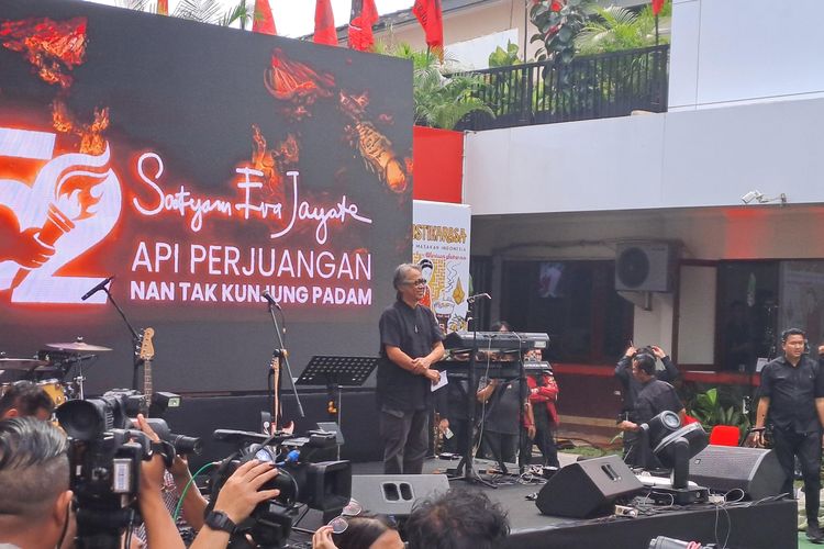 JAKARTA,iDoPress - Budayawan Butet Kartaredjasa membacakan puisi karyanya dalam rangka HUT ke-52 PDI-P di Sekolah Partai PDI-P,Jakarta Selatan,Jumat (10/1/2025).