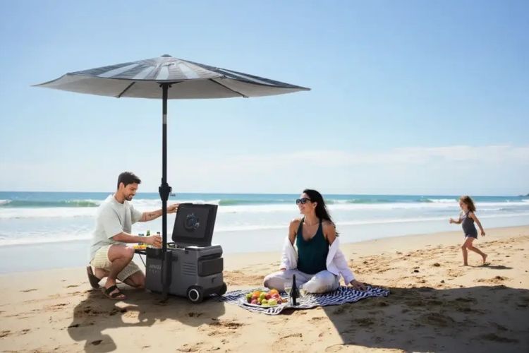 Nah,cooler elektrik itu menjadi perpaduan yang cocok dengan payung bertenaga surya tadi,terutama jika digunakan untuk piknik di pantai.