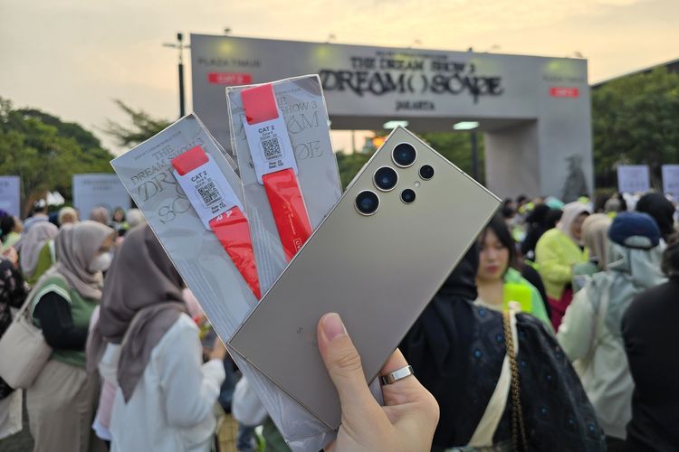 KOMPAS.com/ Galuh Putri Riyanto Samsung Galaxy S24 Ultra dibawa ke konser NCT Dream The Dream Show 3: Dream()Scape di Stadion Utama Gelora Bung Karno (GBK) Jakarta,Sabtu (18/5/2024). Galaxy S24 Ultra bikin fancam dari tribun serasa nonton dari VIP.