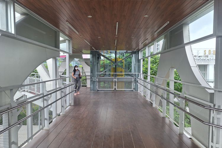 JPO itu menghubungkan Stasiun Tanjung Barat menuju jalan depan Aeon Mall Tanjung Barat.