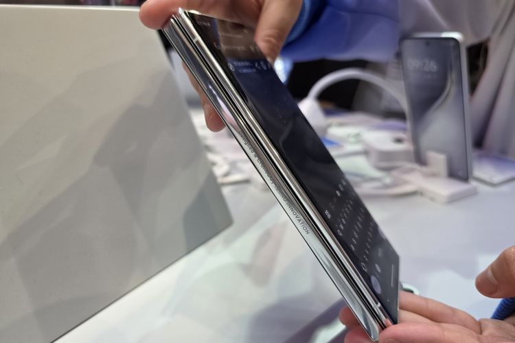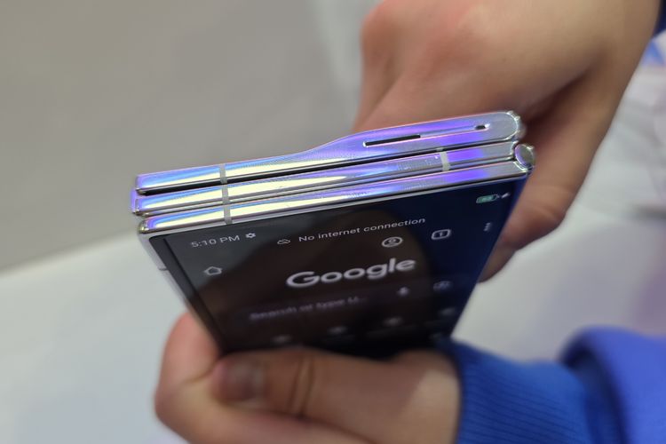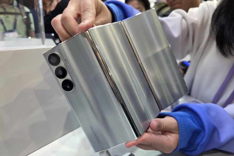 KOMPAS.com/ Galuh Putri Riyanto HP lipat tiga konseptual Tecno Phantom Ultimate 2 memiliki ketebalan 11 mm dalam kndisi terlipat sempurna. Ini lebih tipis dari HP lipat tiga Huawei Mate XT Ultimate yang setebal 12,8 mm.