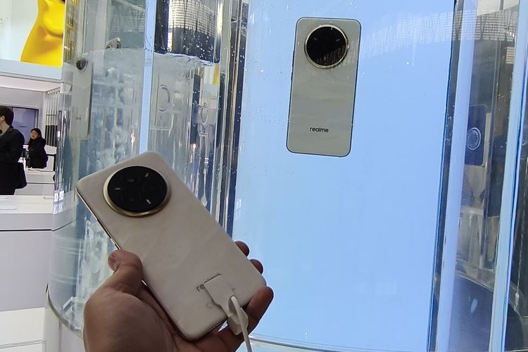 KOMPAS.com/Bill Clinten. Warna casing ponsel Realme 14 Pro berubah saat terendam air.