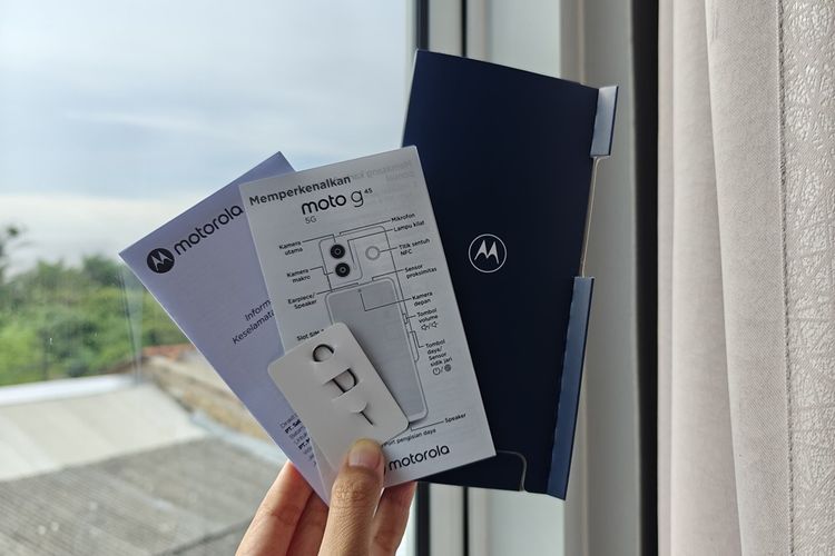 Selain ponsel dan jelly case,kemasan Moto G45 5G juga mencakup adapter charger 20 Watt,USB-C,panduan singkat,lembar garansi dan SIM ejector.