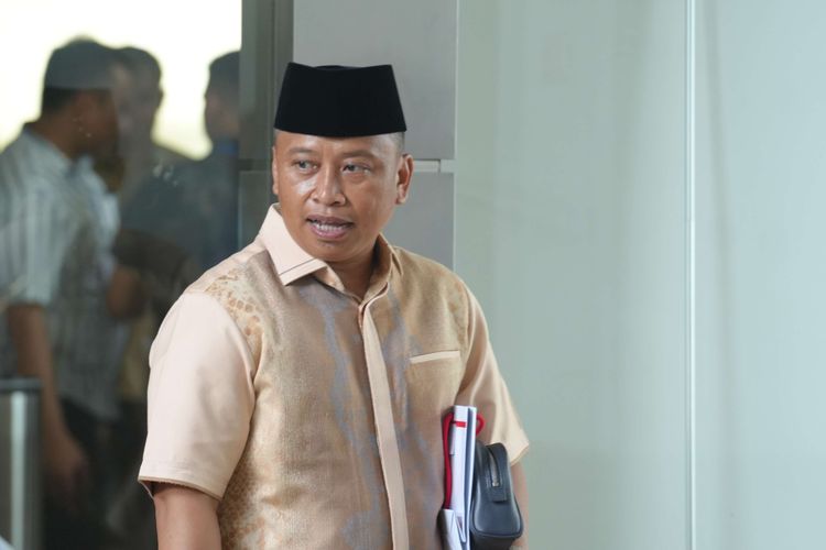 Pengamatan Kompas.com di lokasi,Supian hadir mengenakan kemeja putih,celana hitam,dan peci hitamnya.