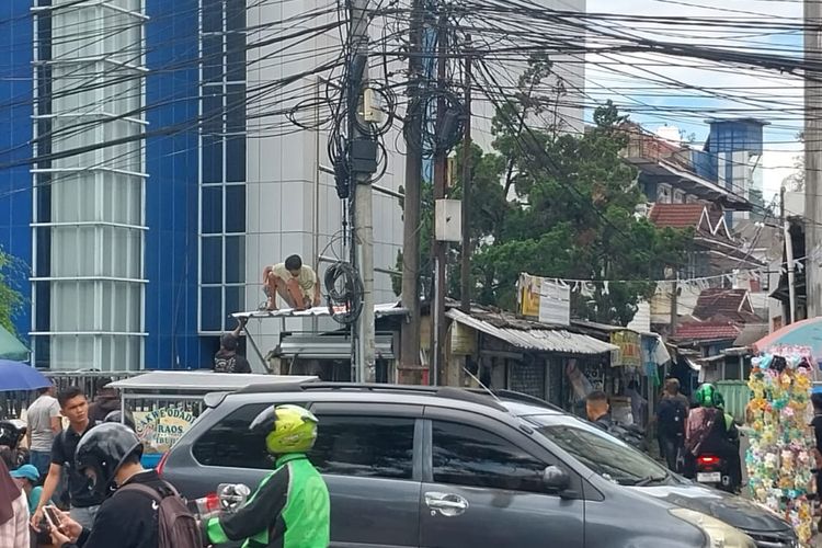 Pantauan iDoPress, Dedie sedang mencari sumber aliran listrik ilegal yang menyuplai para PKL untuk berjualan di trotoar Jalan Dewi Sartika.
